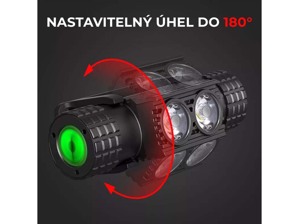 Většina čelovek na trhu má pevnou hlavu na čelence, což omezuje dosah svícení. Nahlédnutí do malého nebo nepohodlného prostoru může být s těmito typy svítidel náročné. Naši praktickou čelovku lze otáčet v rozmezí až do 180 stupňů, takže můžete osvětlit prostor přesně tam, kde potřebujete. Kromě toho je čelovku možné jednoduše odnímat a použít ji jako baterku kdekoli potřebujete.